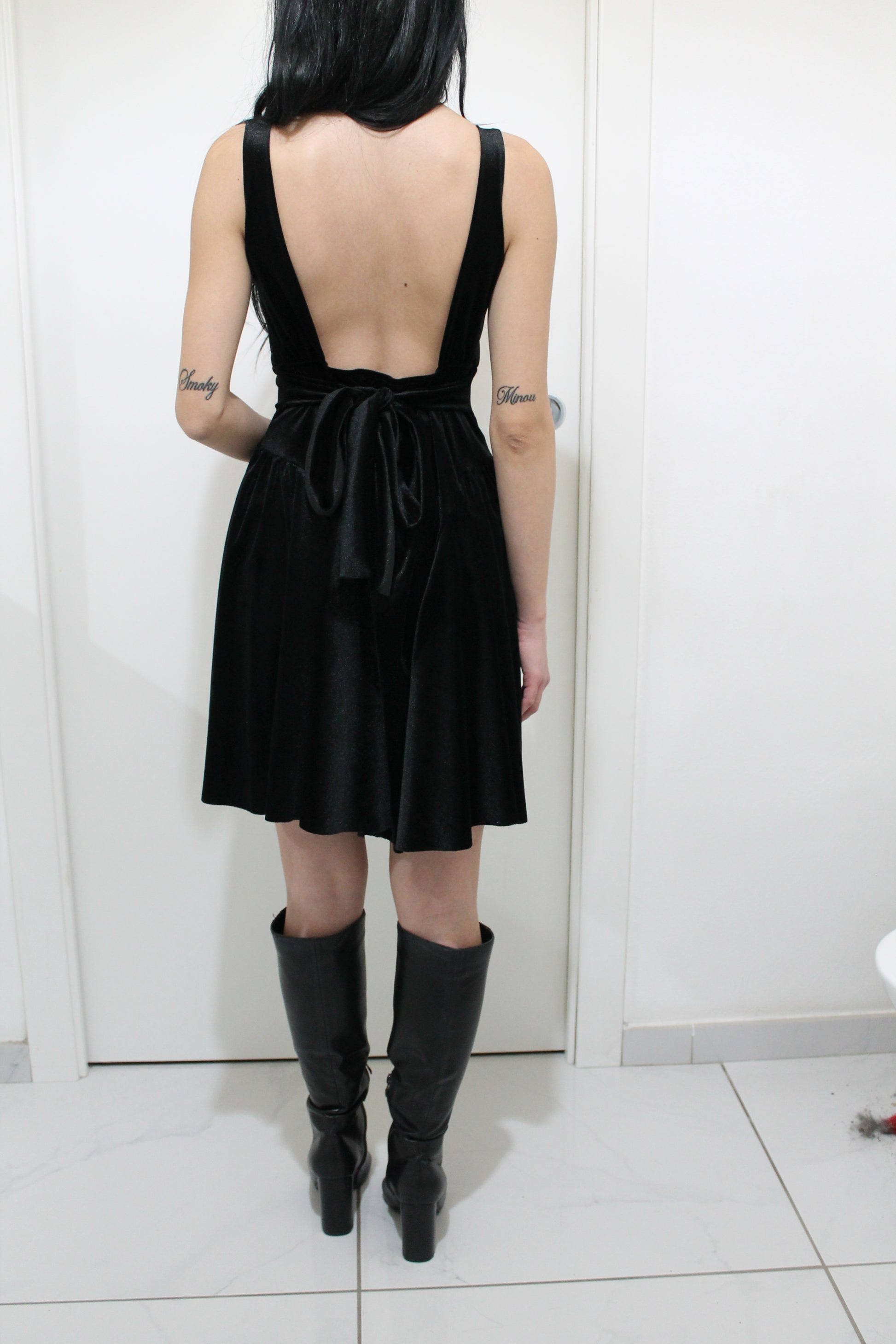Abito Nero in Velluto – Schiena Scoperta con Fiocco