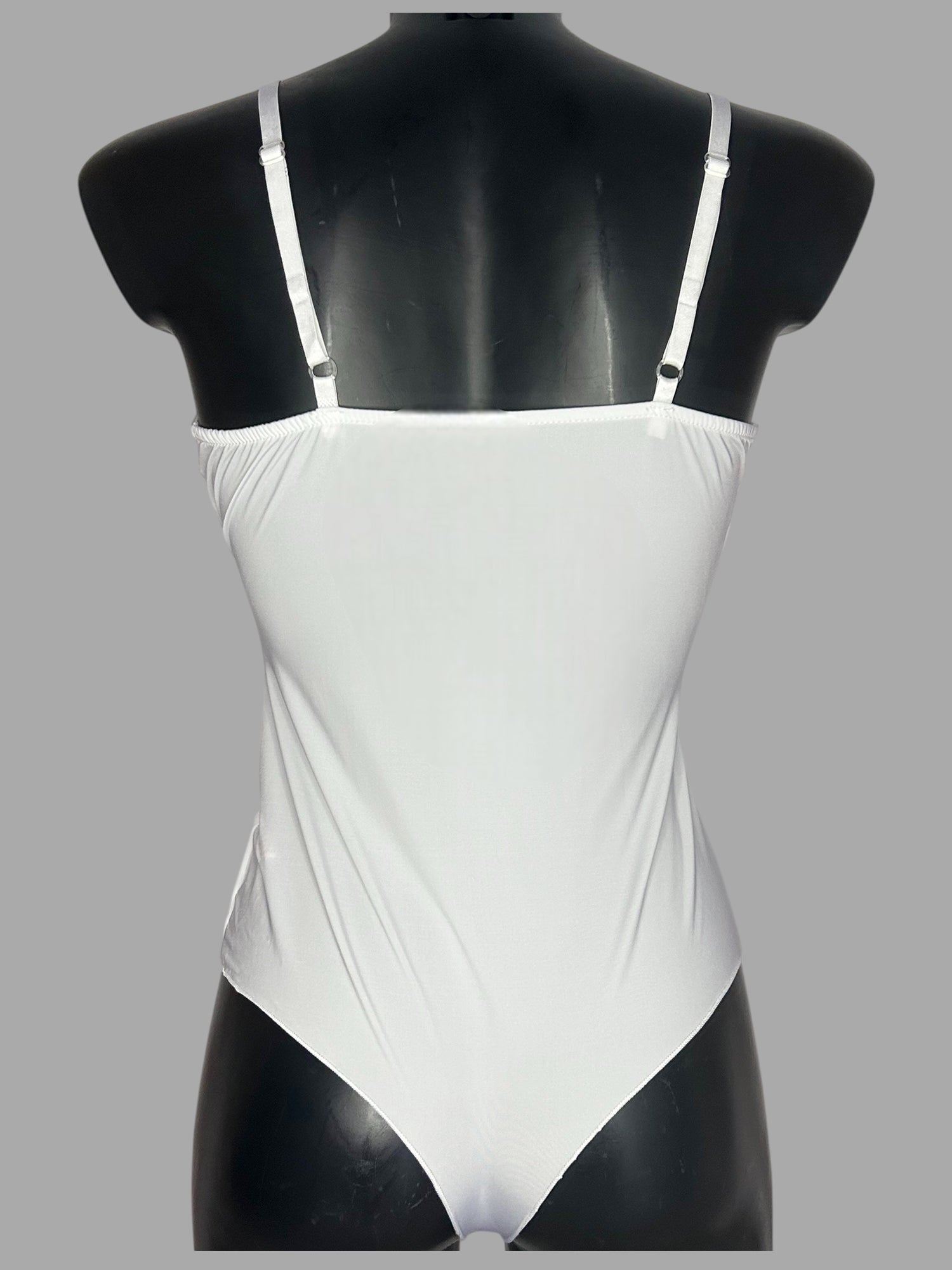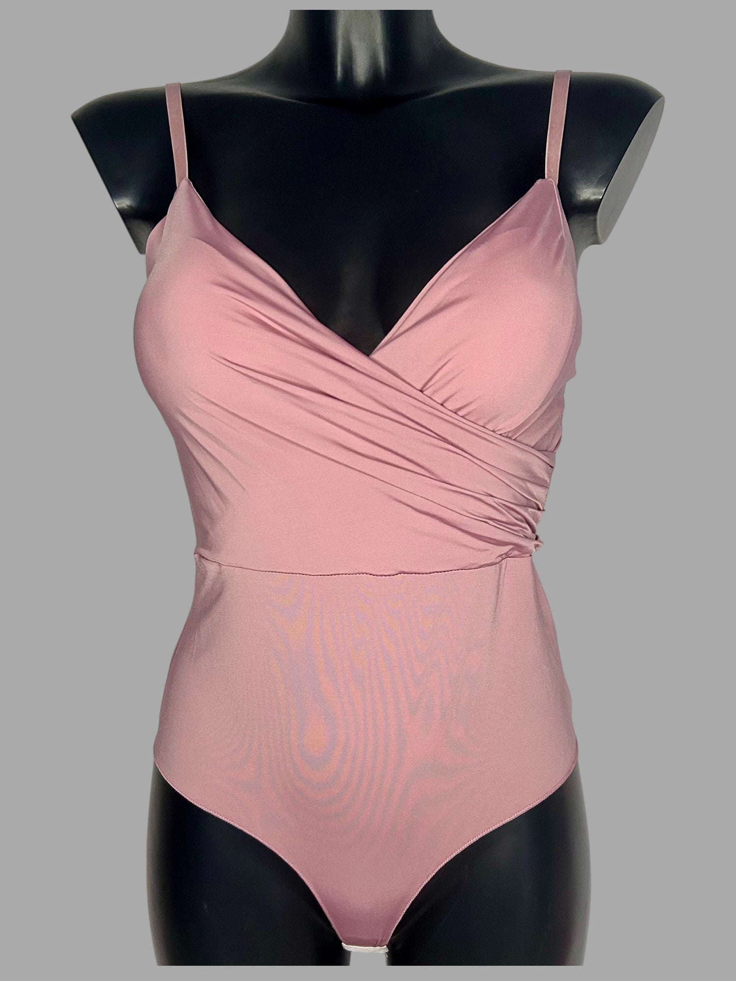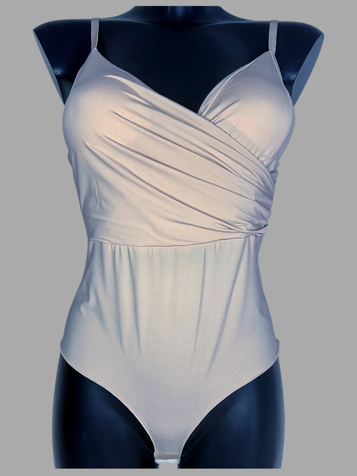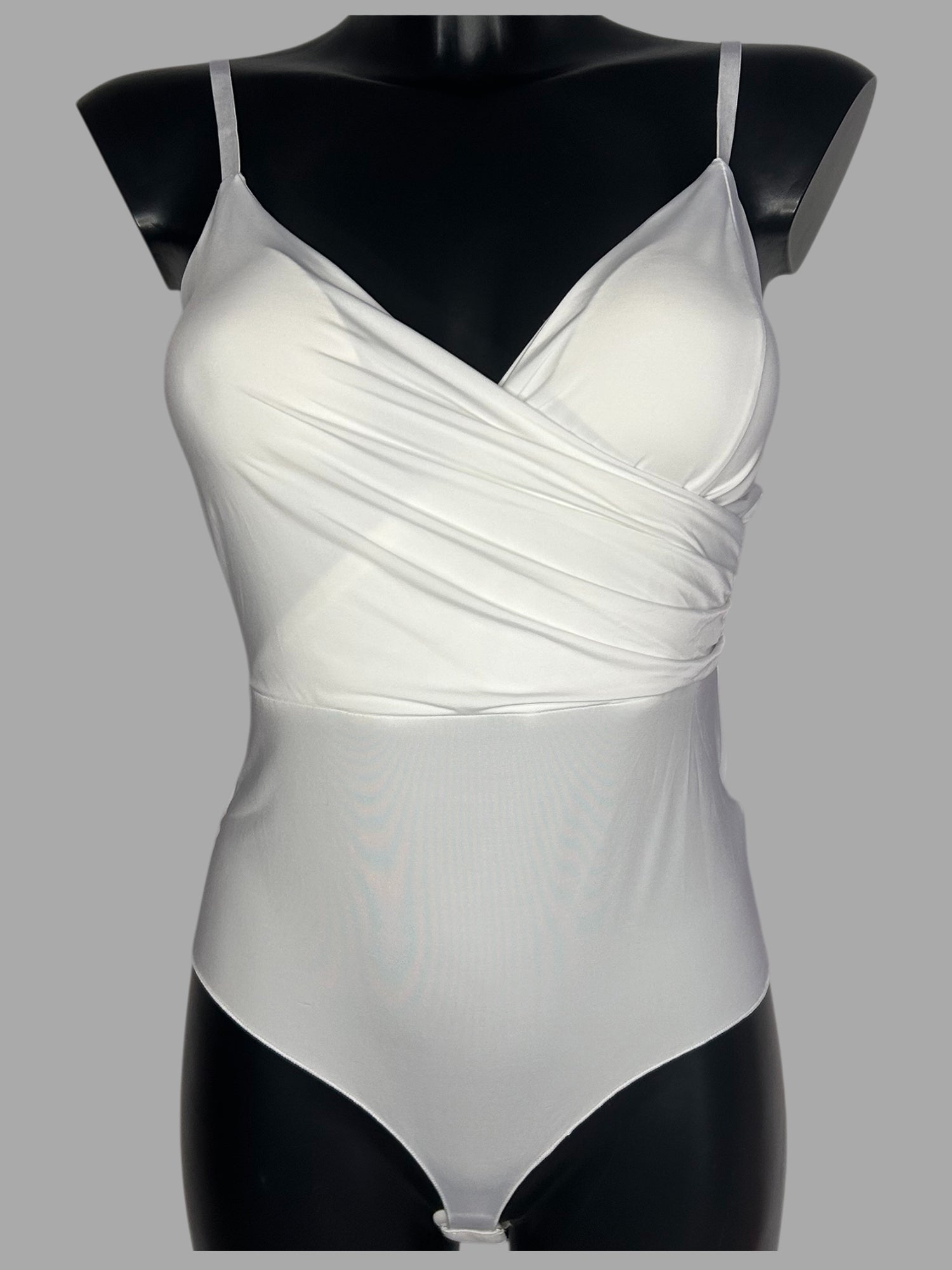 Body elegante con scollo a V incrociato e raffinato drappeggio sul davanti.