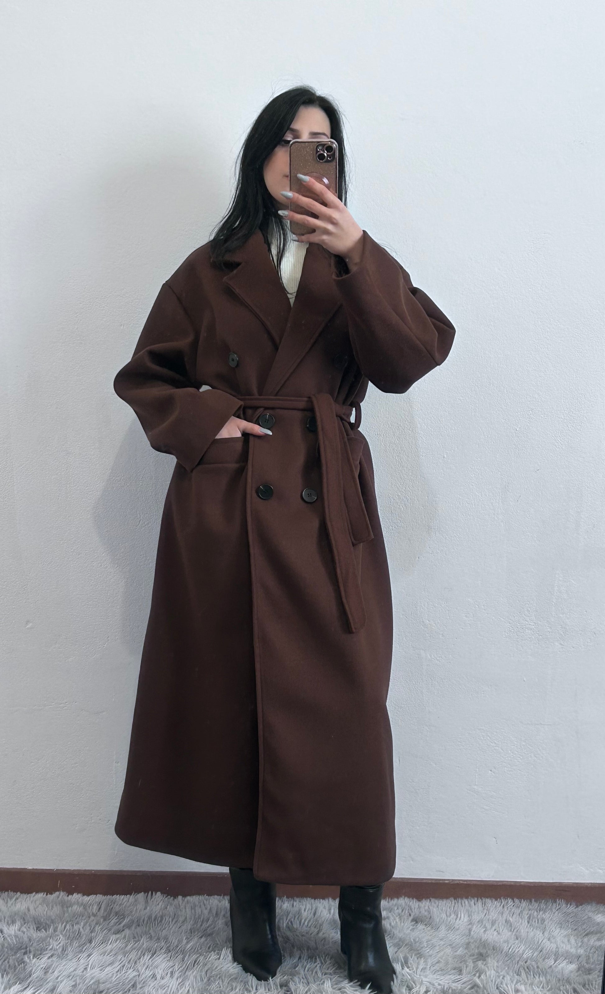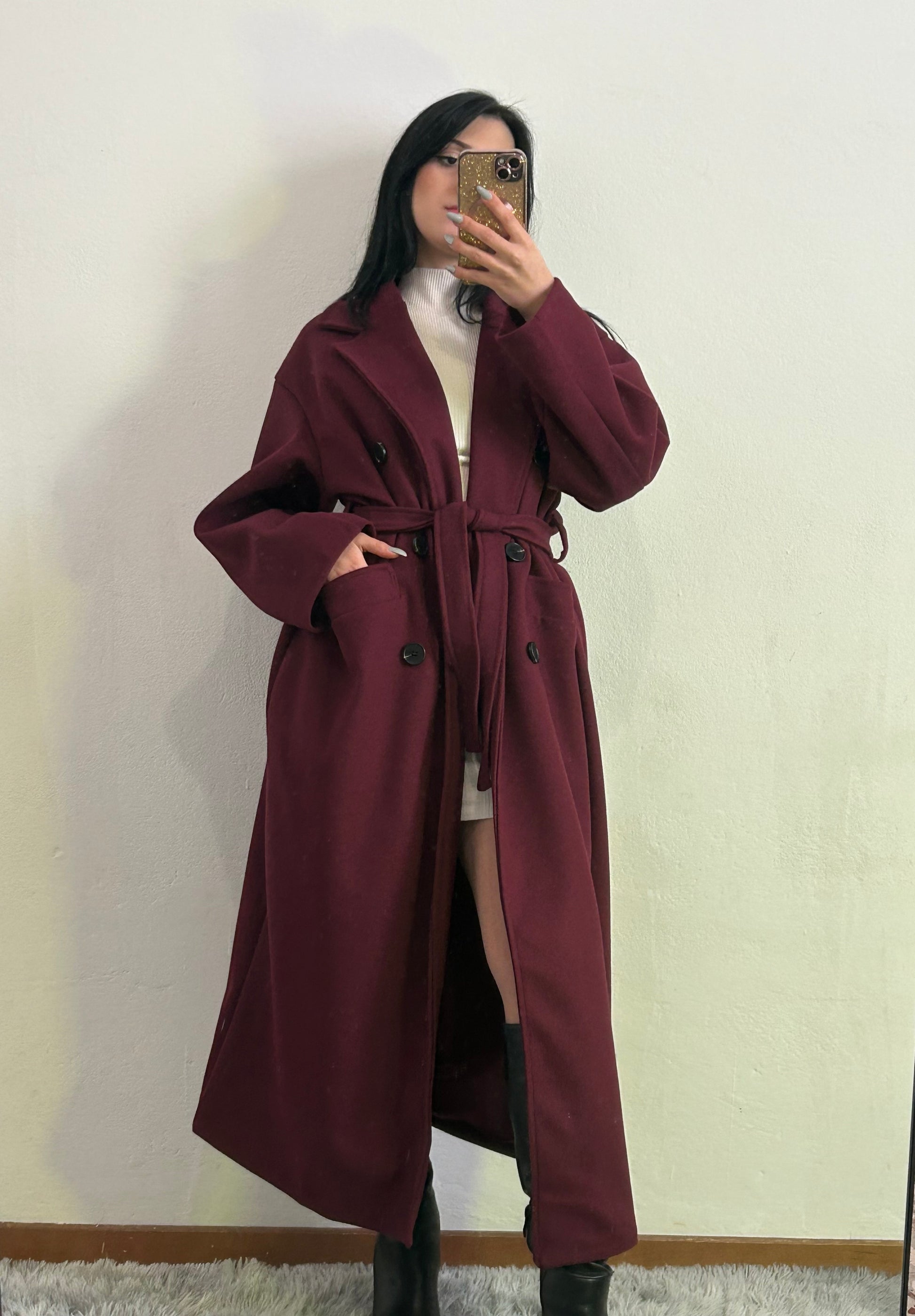 Cappotto lungo con cintura in vita per valorizzare la figura, caldo e raffinato.