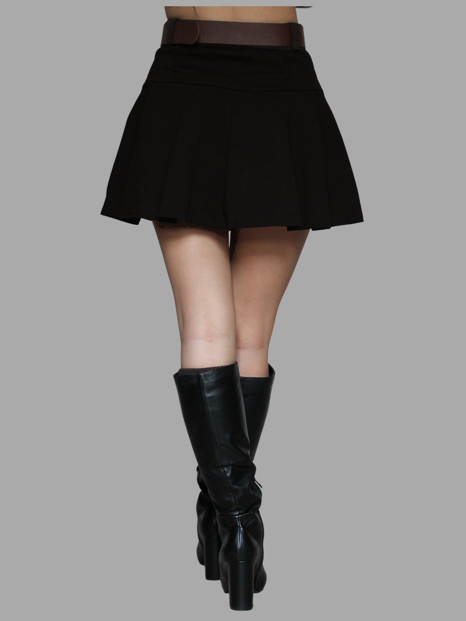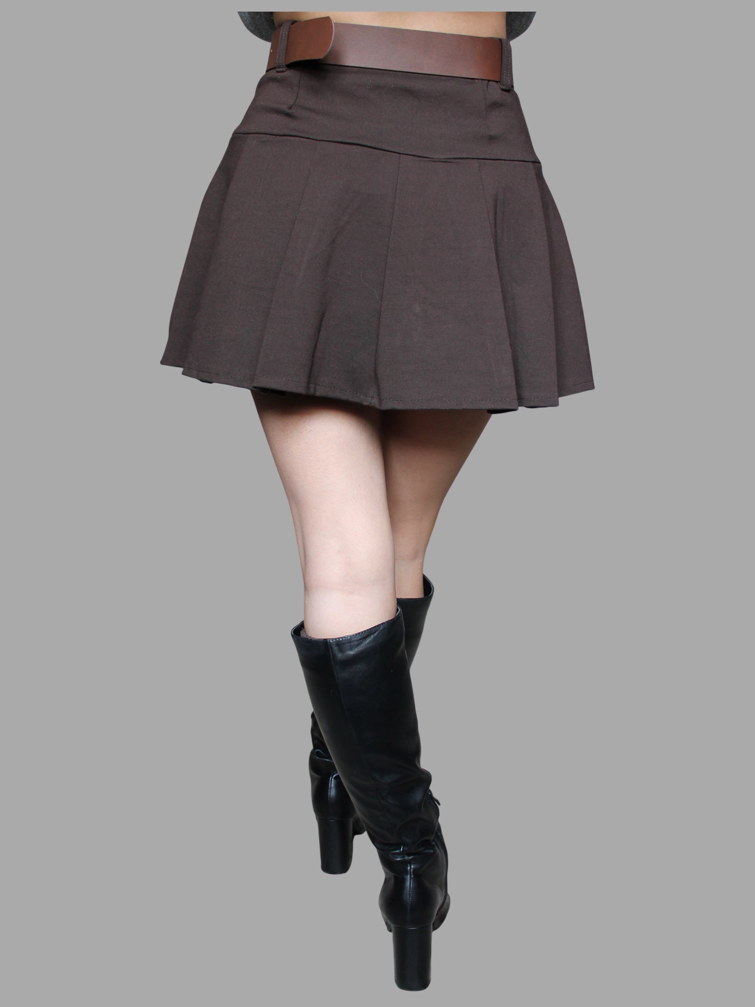 Gonna corta con pieghe per volume e struttura alla gonna, con cintura abbinata.