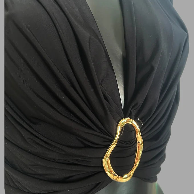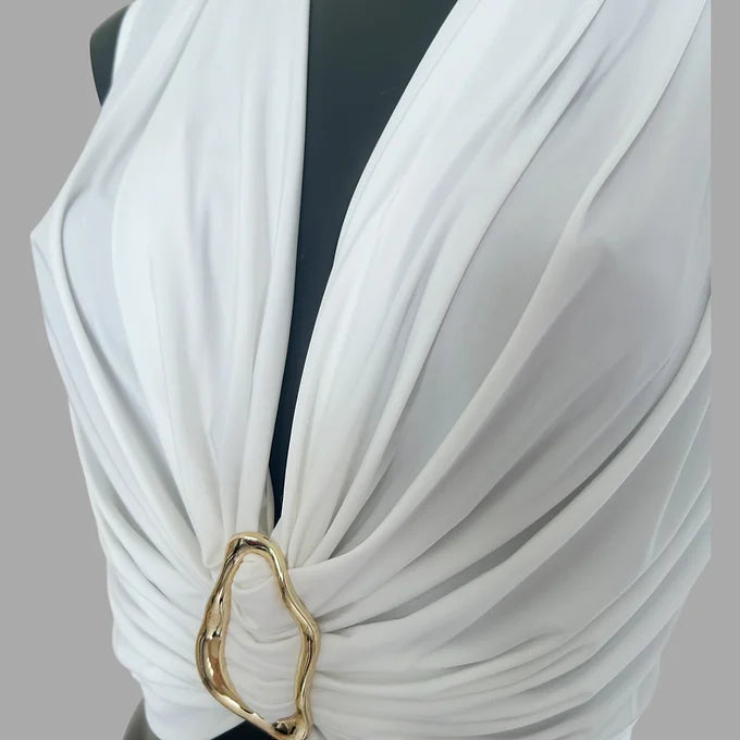 Top drappeggiato con gioiello sul davanti